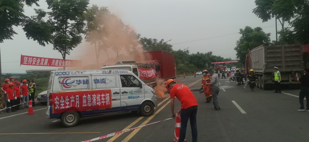 6月17日,公司联合迎瑞物流等五家公司,举行仓储及道路运输事故联合应急演练。公司总经理、副总经理及各部门负责人亲自带队参与演练,演练得到了龙马潭区交通运输局、应急管理局及自贸区、鱼塘街道等各级部门大力支持和指导,演练圆满成功。